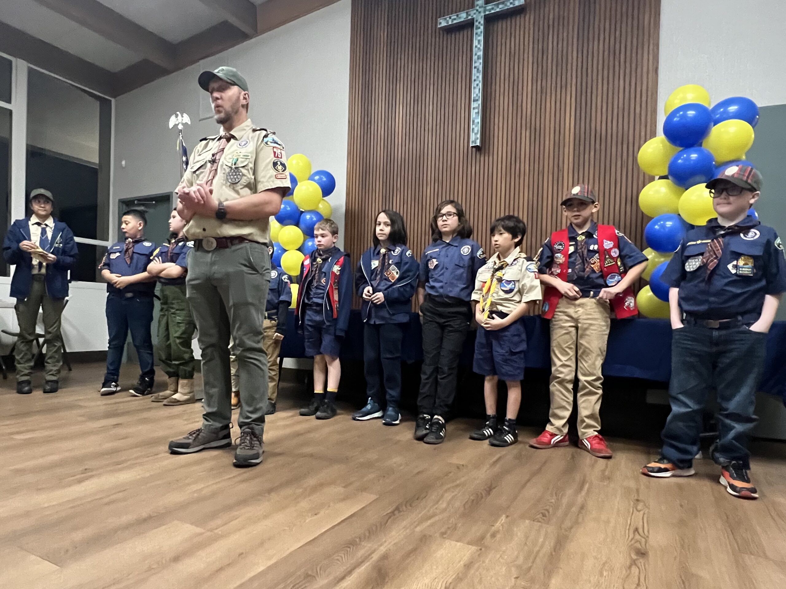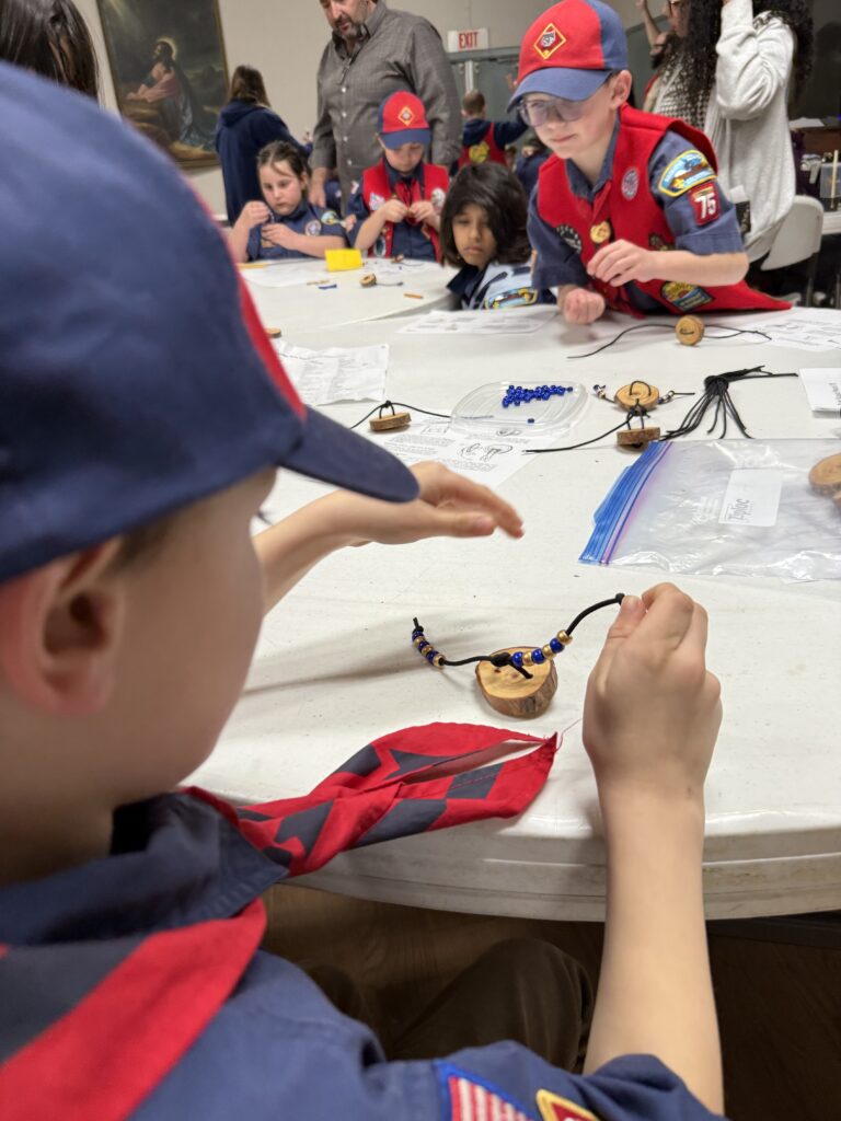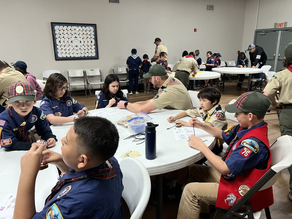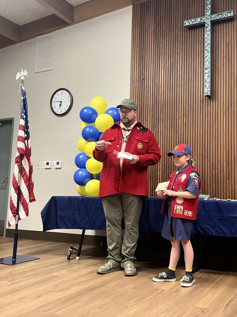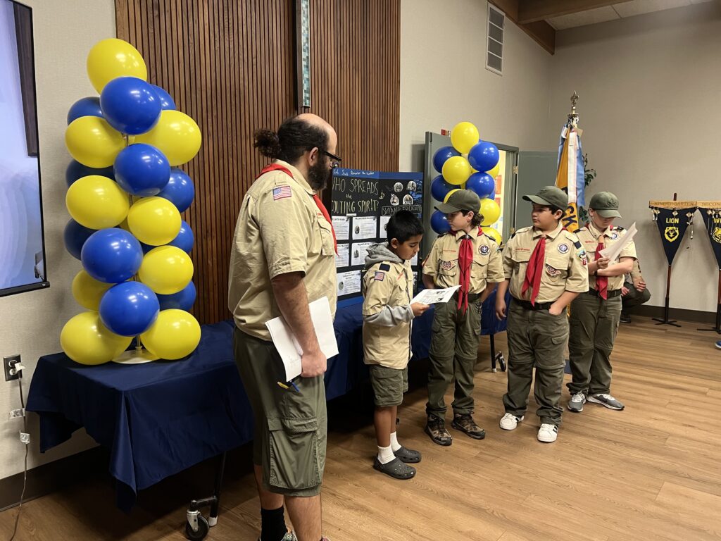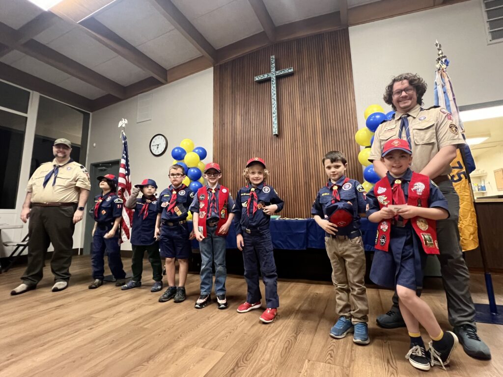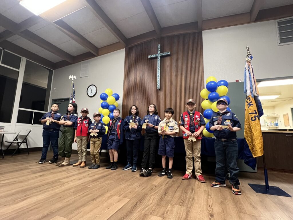 Pack 75 observed the anniversary of Scouting with the traditional Blue & Gold celebration. The scouts were presented with awards for their latest achievements, and showed off all of their patches and belt loops to signify their hard work in Scouting.