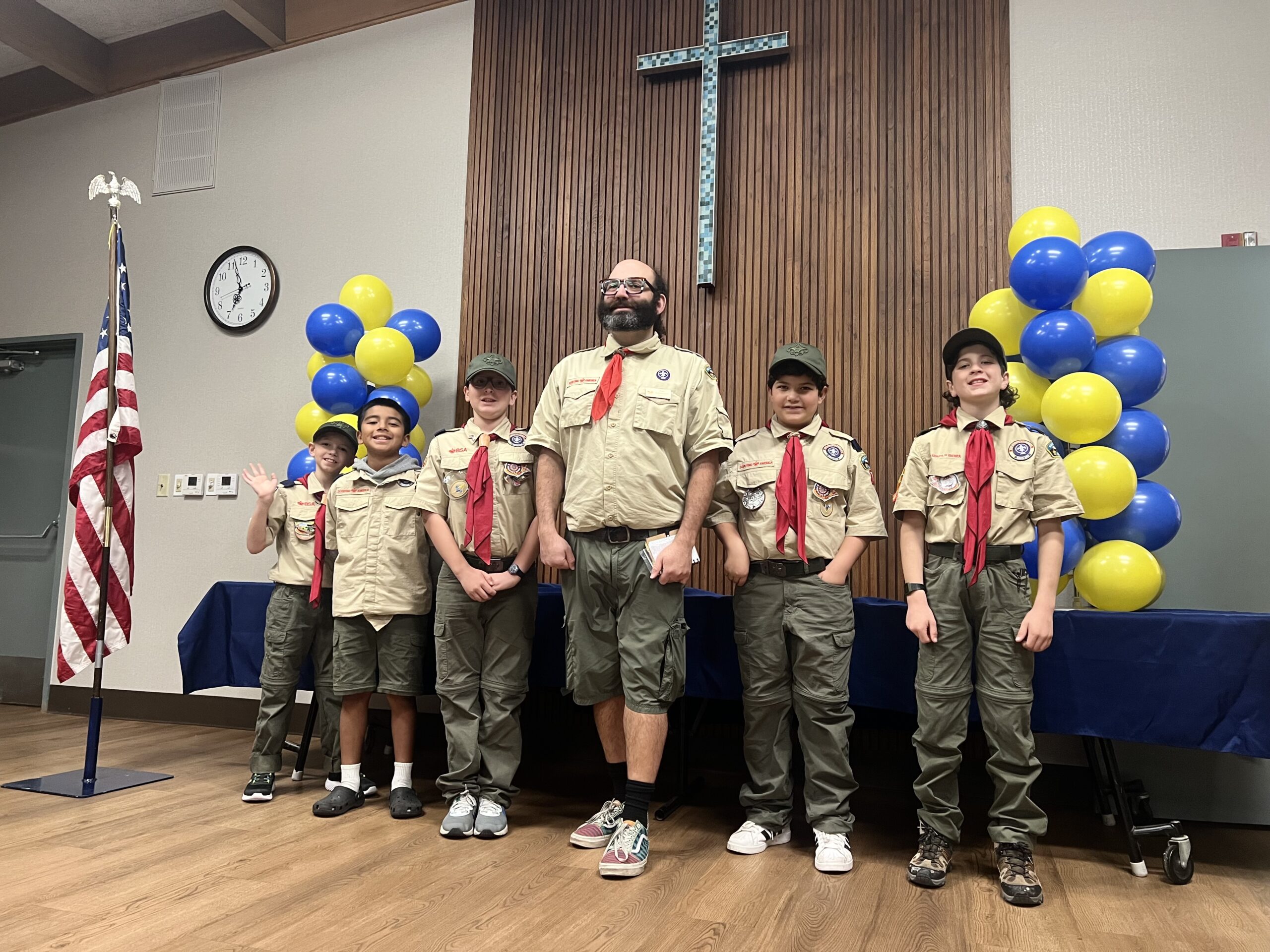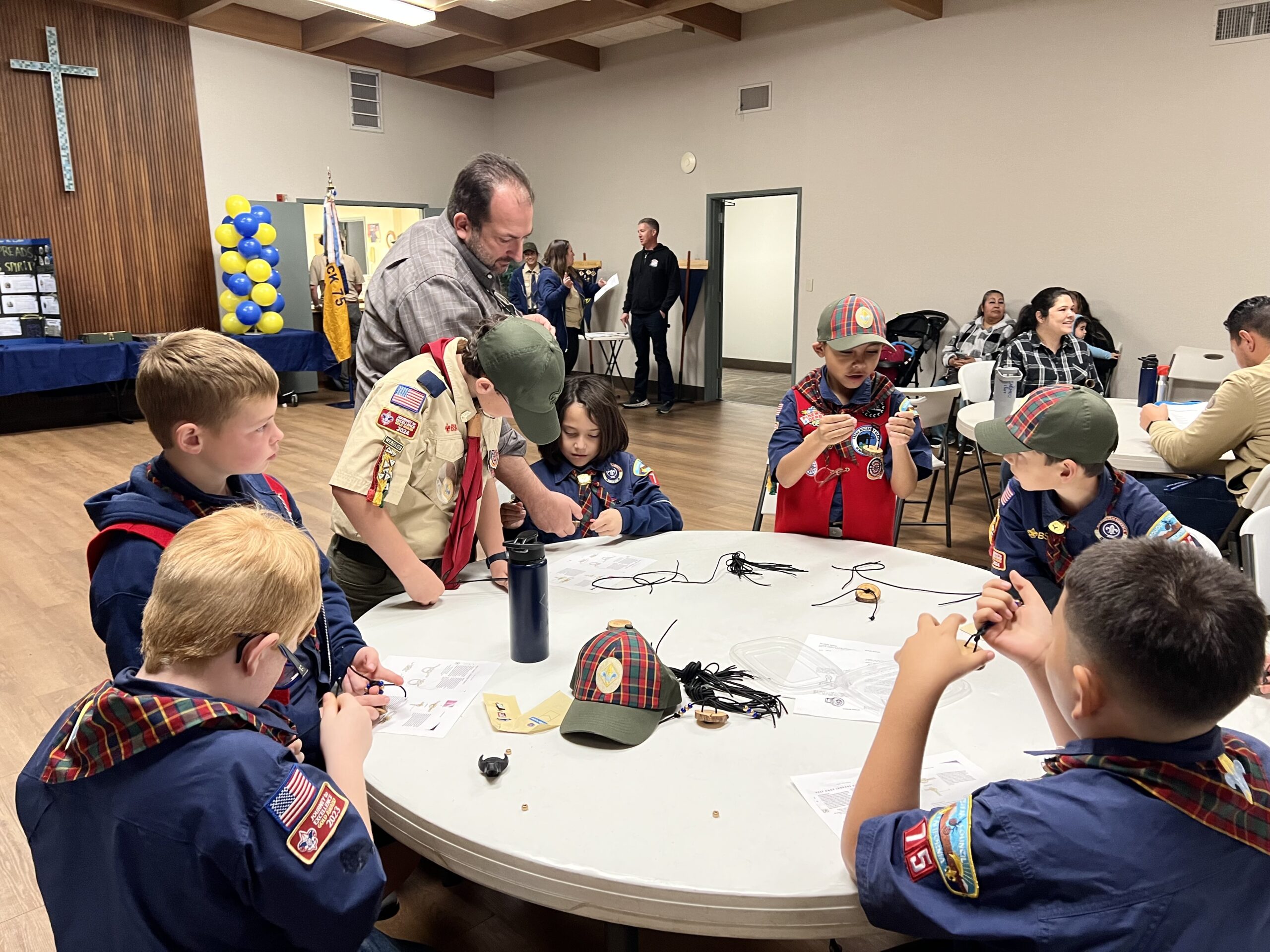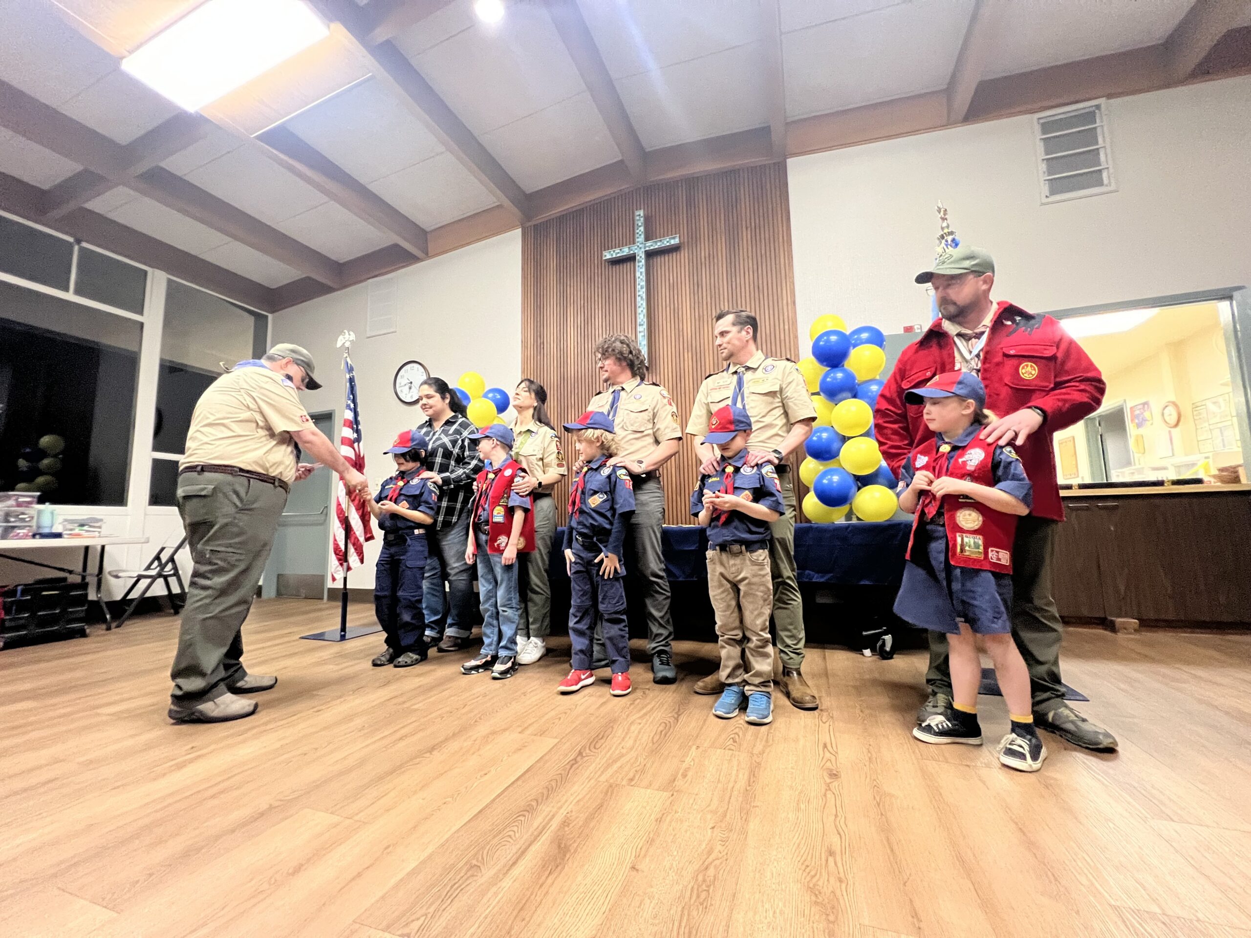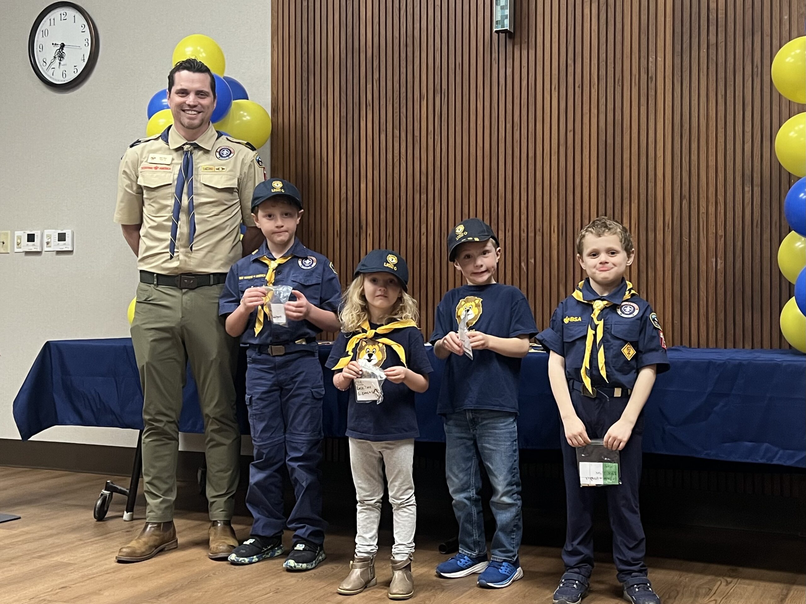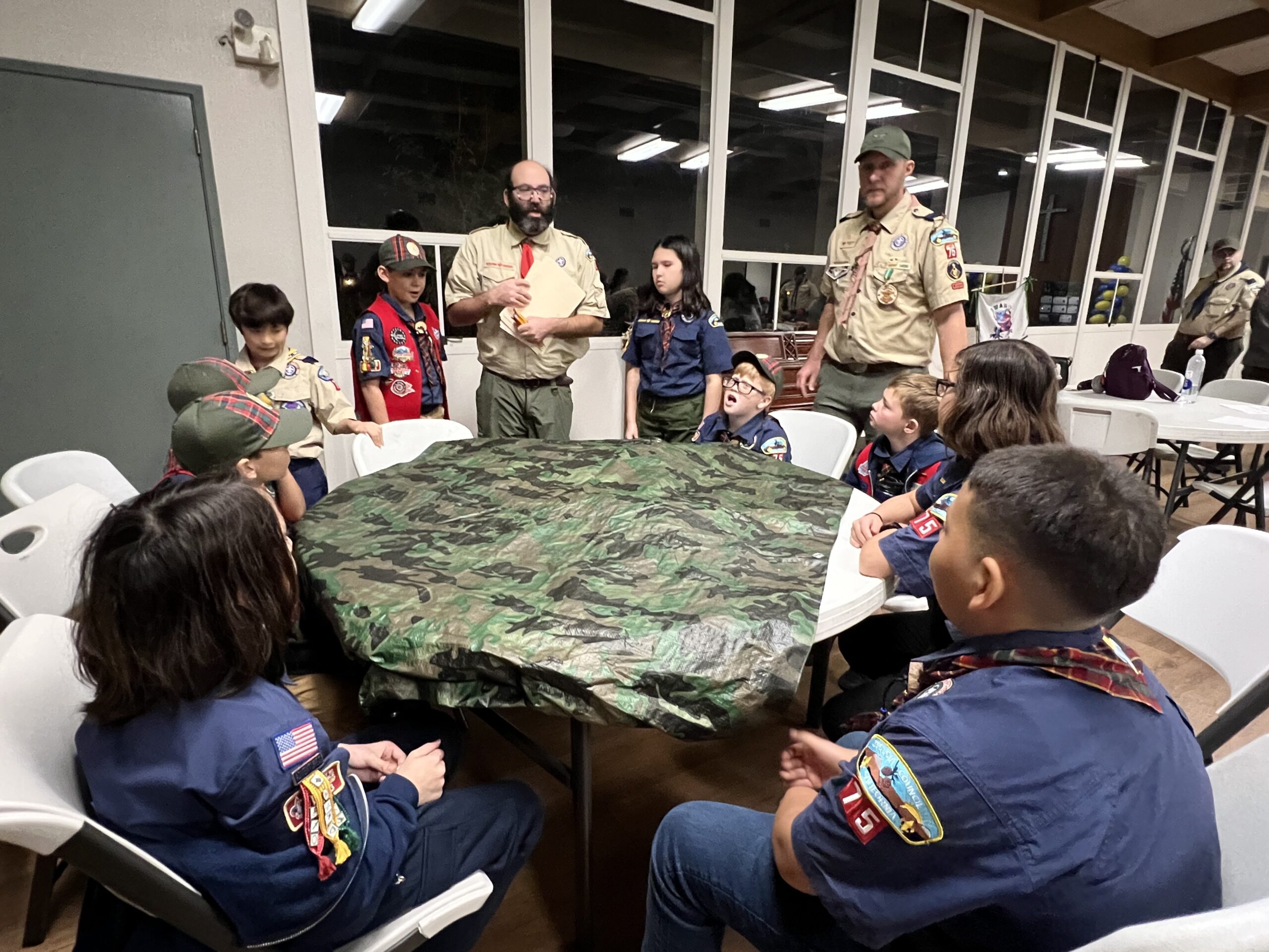 Pack 75 observed the anniversary of Scouting with the traditional Blue & Gold celebration. The scouts were presented with awards for their latest achievements, and showed off all of their patches and belt loops to signify their hard work in Scouting.