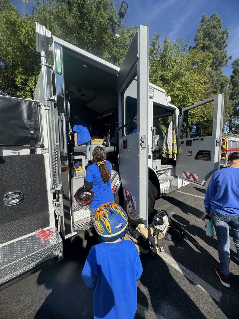 Pack 75 enjoyed a beautiful Saturday morning learning the ABC’s of biking (Air, Brakes, Chain!) and some important safety lessons, complete with a visit from North Central Fire. The scouts even got to explore Station 59’s two engines and see some of their firefighting tools up close!