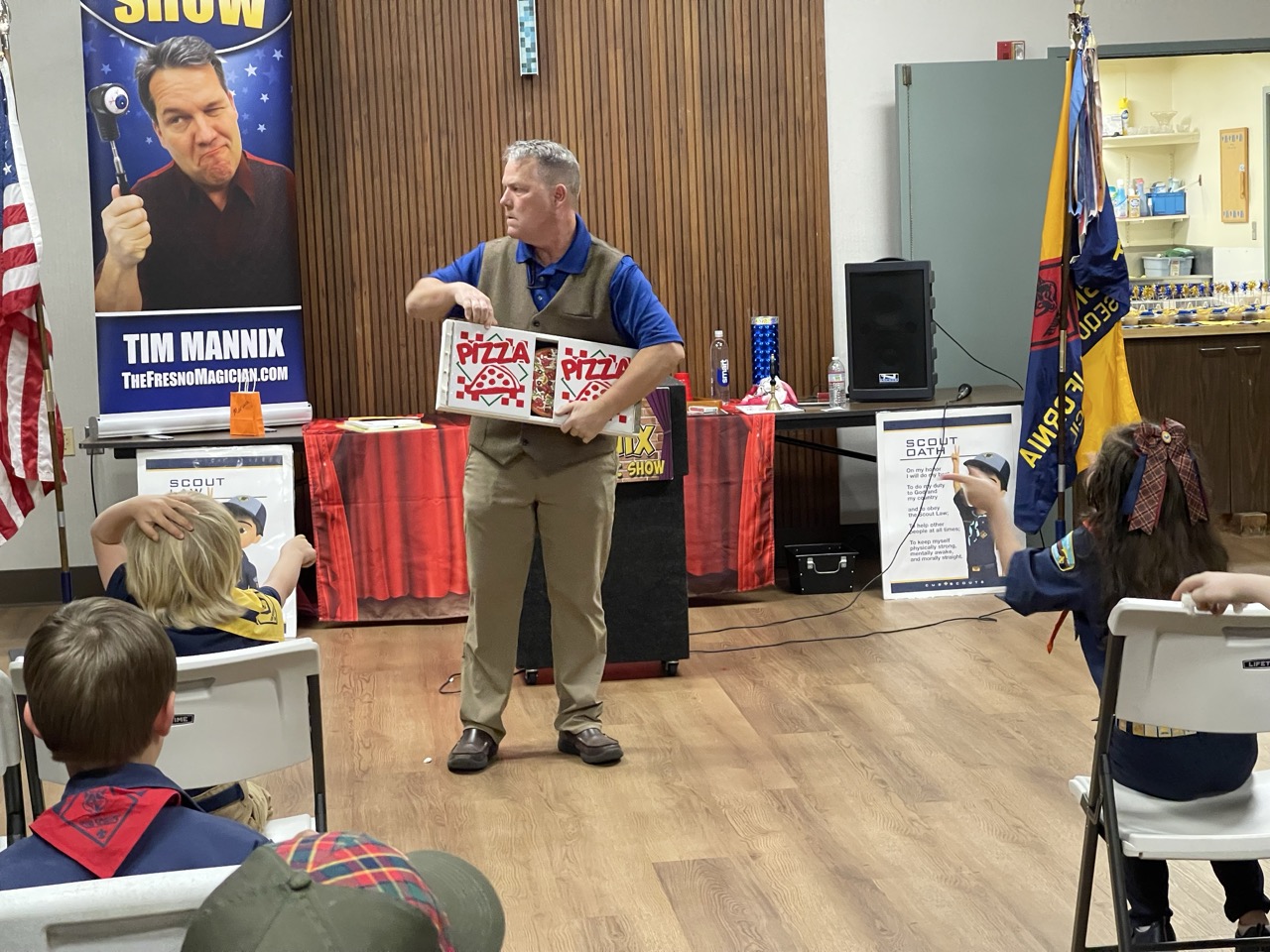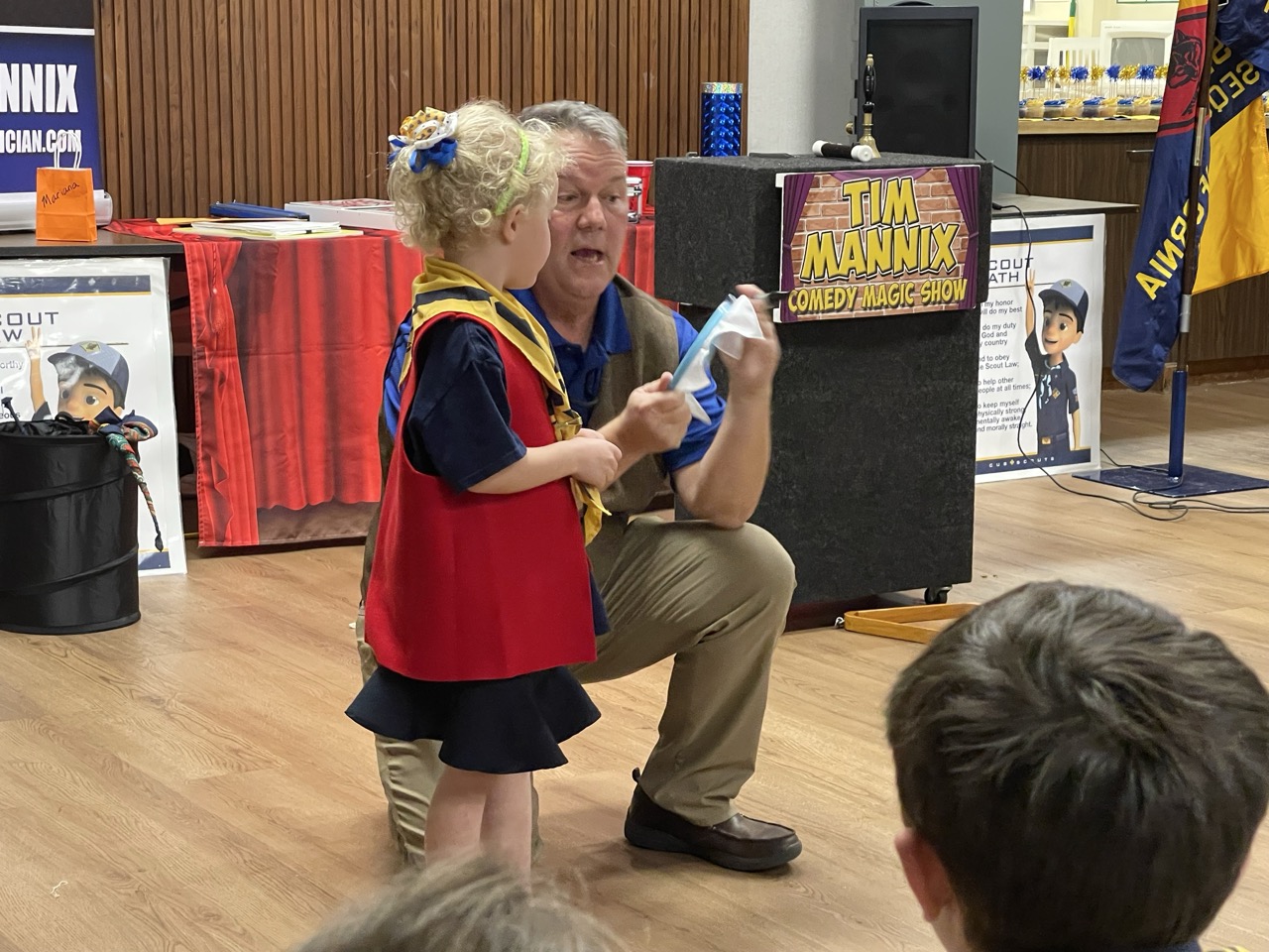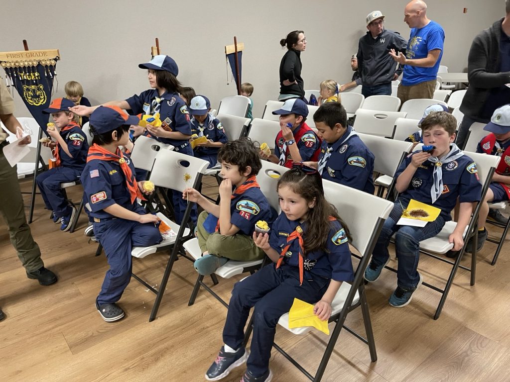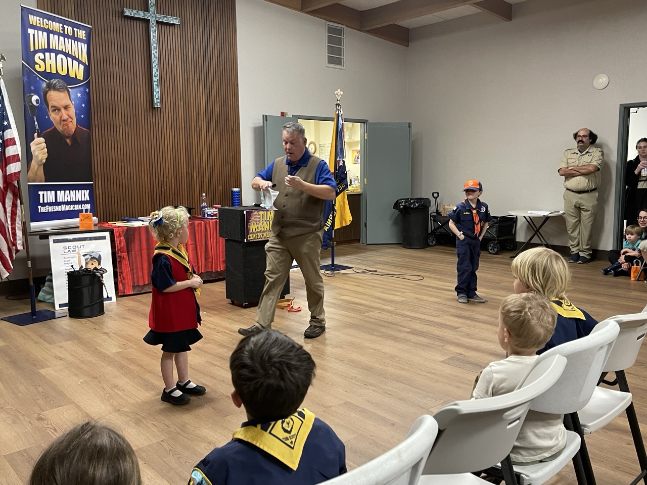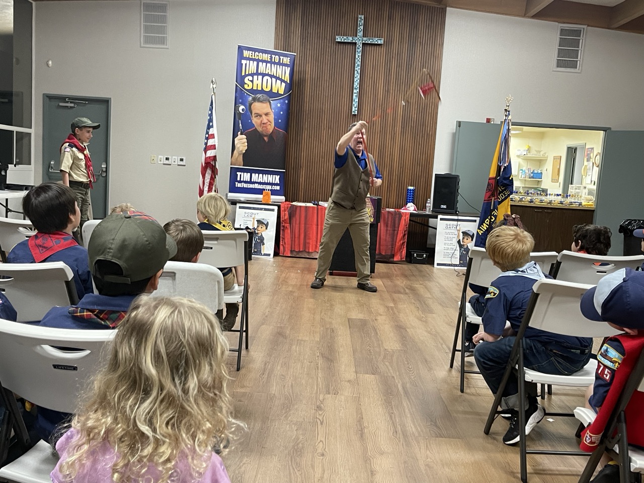 Pack 75 celebrated the 109th anniversary of the Cub Scouts this week with an awards ceremony and a fantastic magic show from Tim Mannix! And of course, blue and gold cupcakes for everyone.