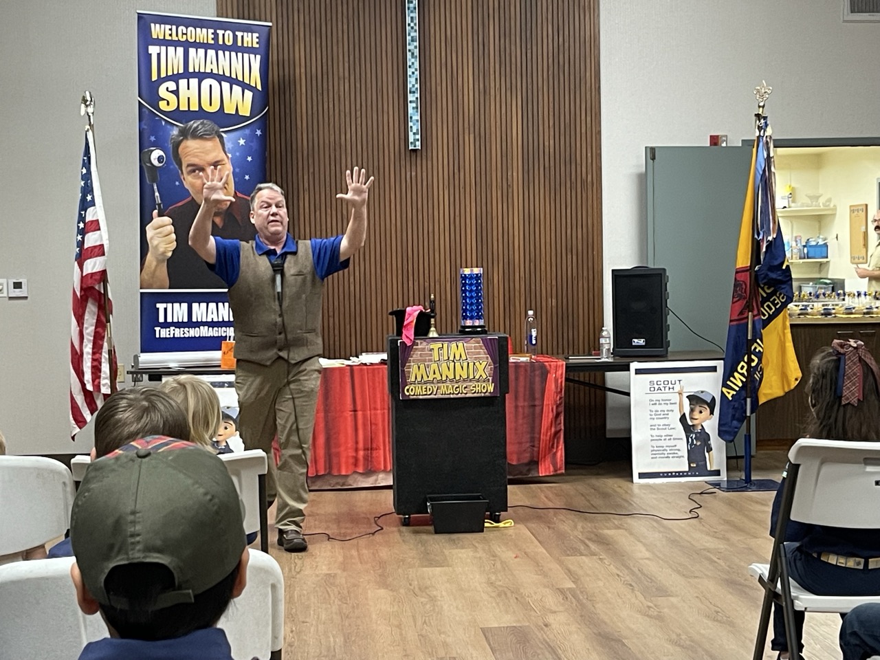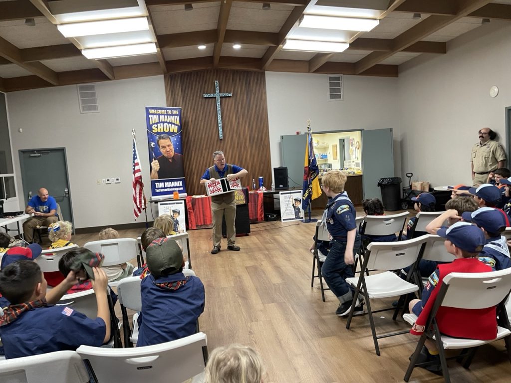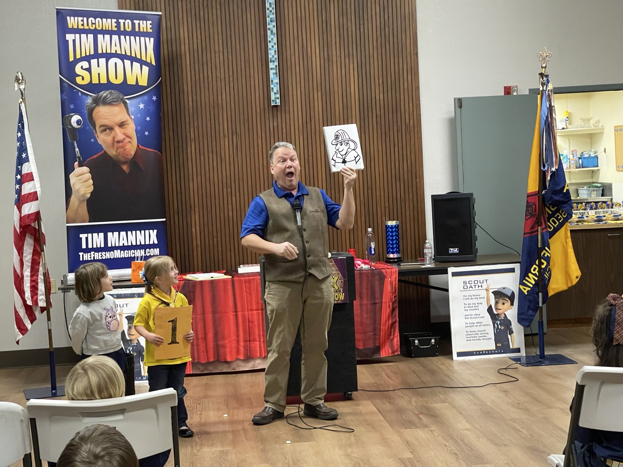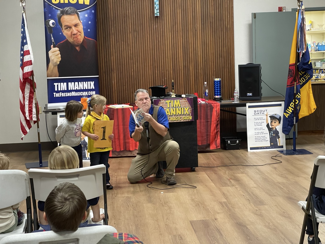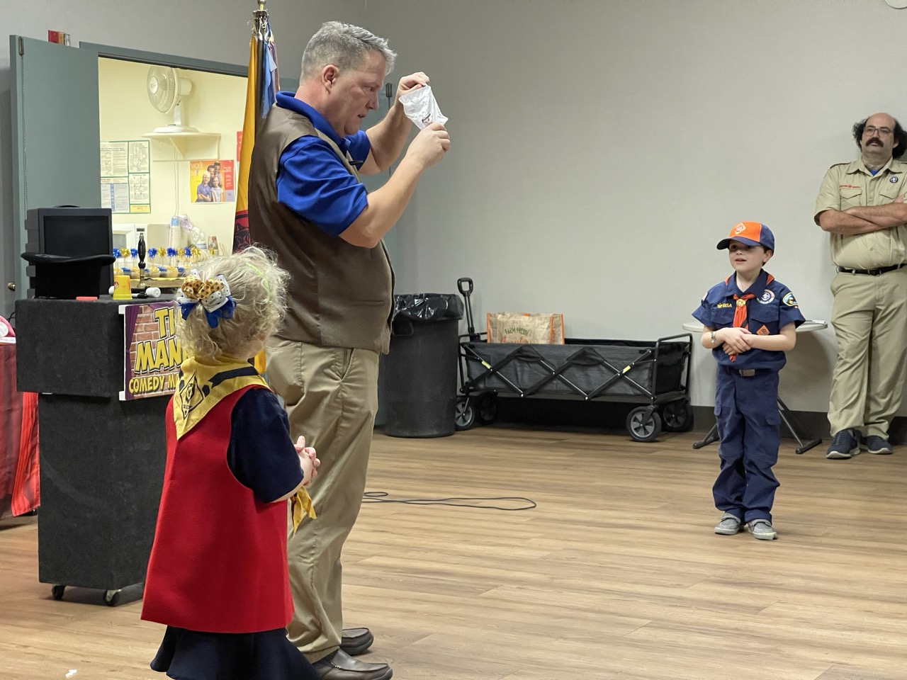 Pack 75 celebrated the 109th anniversary of the Cub Scouts this week with an awards ceremony and a fantastic magic show from Tim Mannix! And of course, blue and gold cupcakes for everyone.