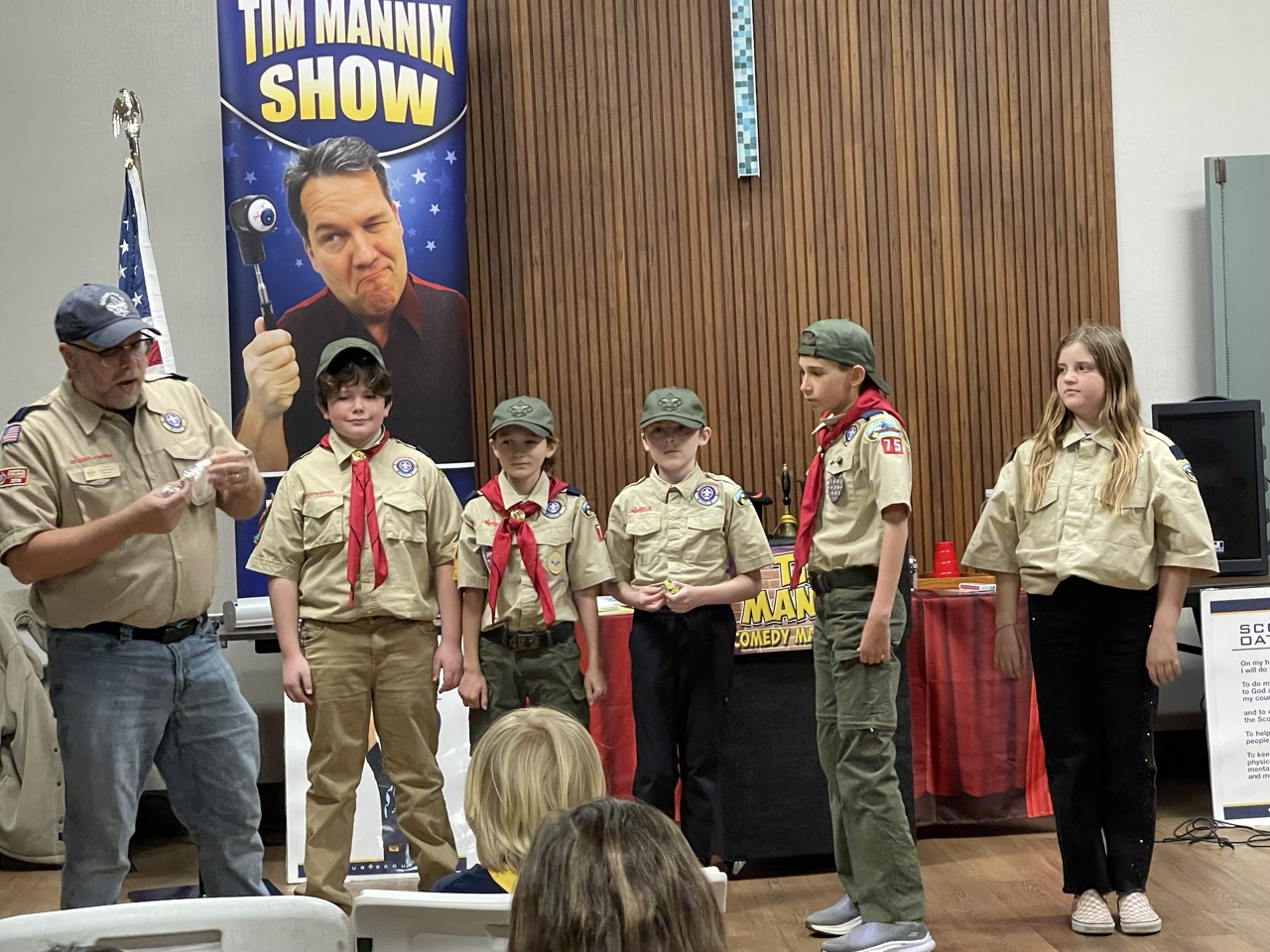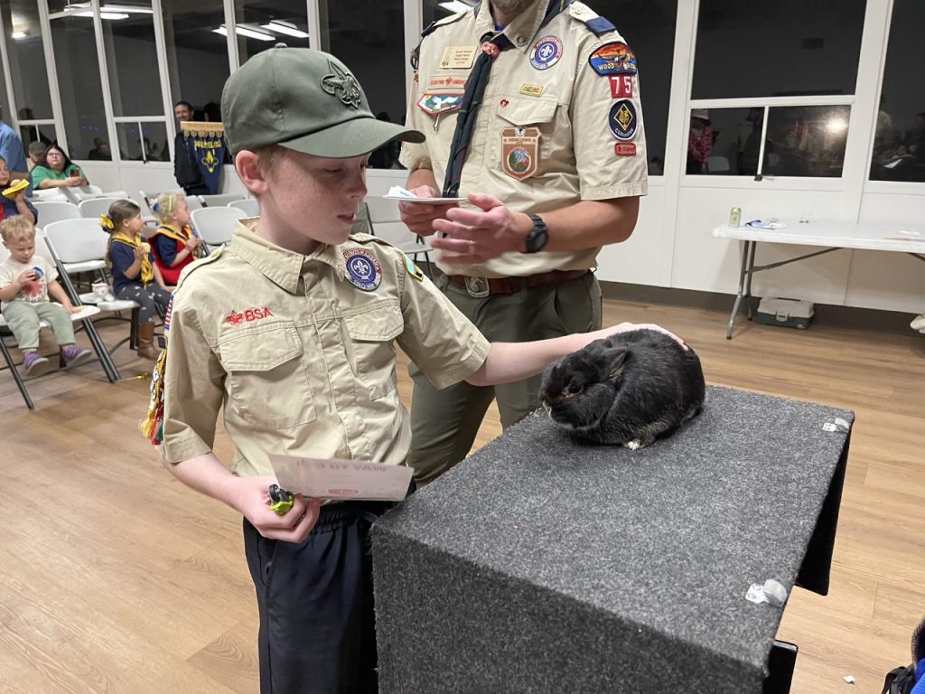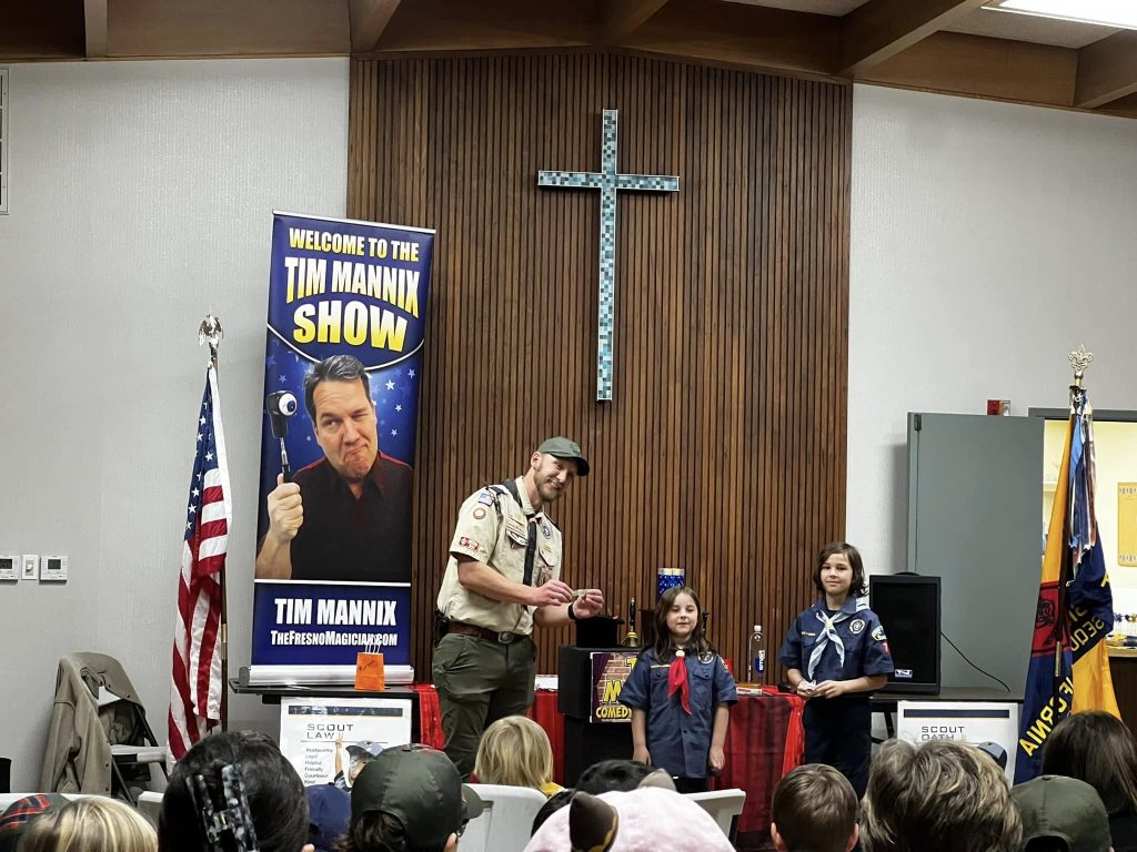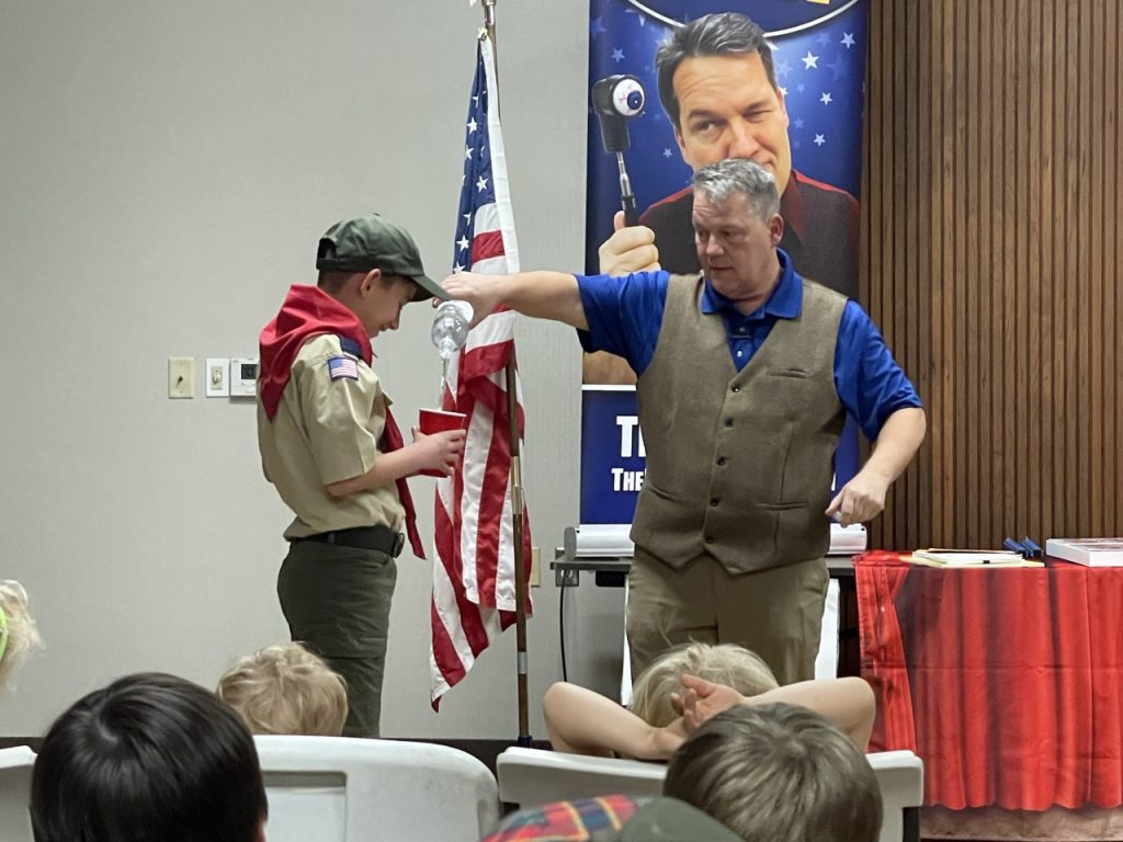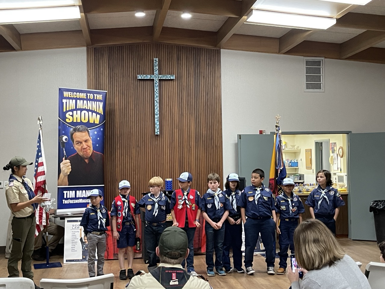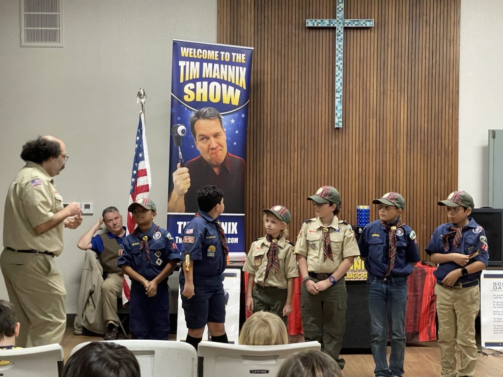 Pack 75 celebrated the 109th anniversary of the Cub Scouts this week with an awards ceremony and a fantastic magic show from Tim Mannix! And of course, blue and gold cupcakes for everyone.