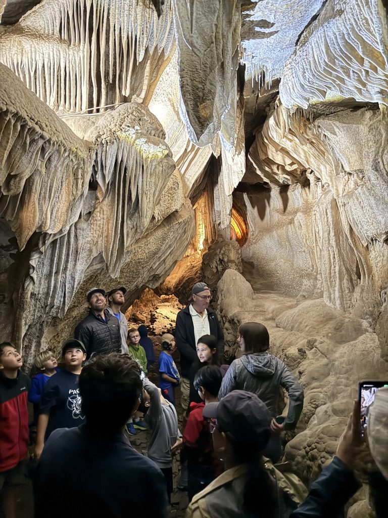 Pack 75 Scouts and families enjoyed a very special morning at Boyden Cavern in Kings Canyon National Park. The trip included a guided tour of the caves where the Scouts learned about the formation of the Cavern, how the stalactite and stalagmite develops over hundreds of years, and of course- Cave Bacon! They even got to experience total darkness 3,500ft below a mountain!