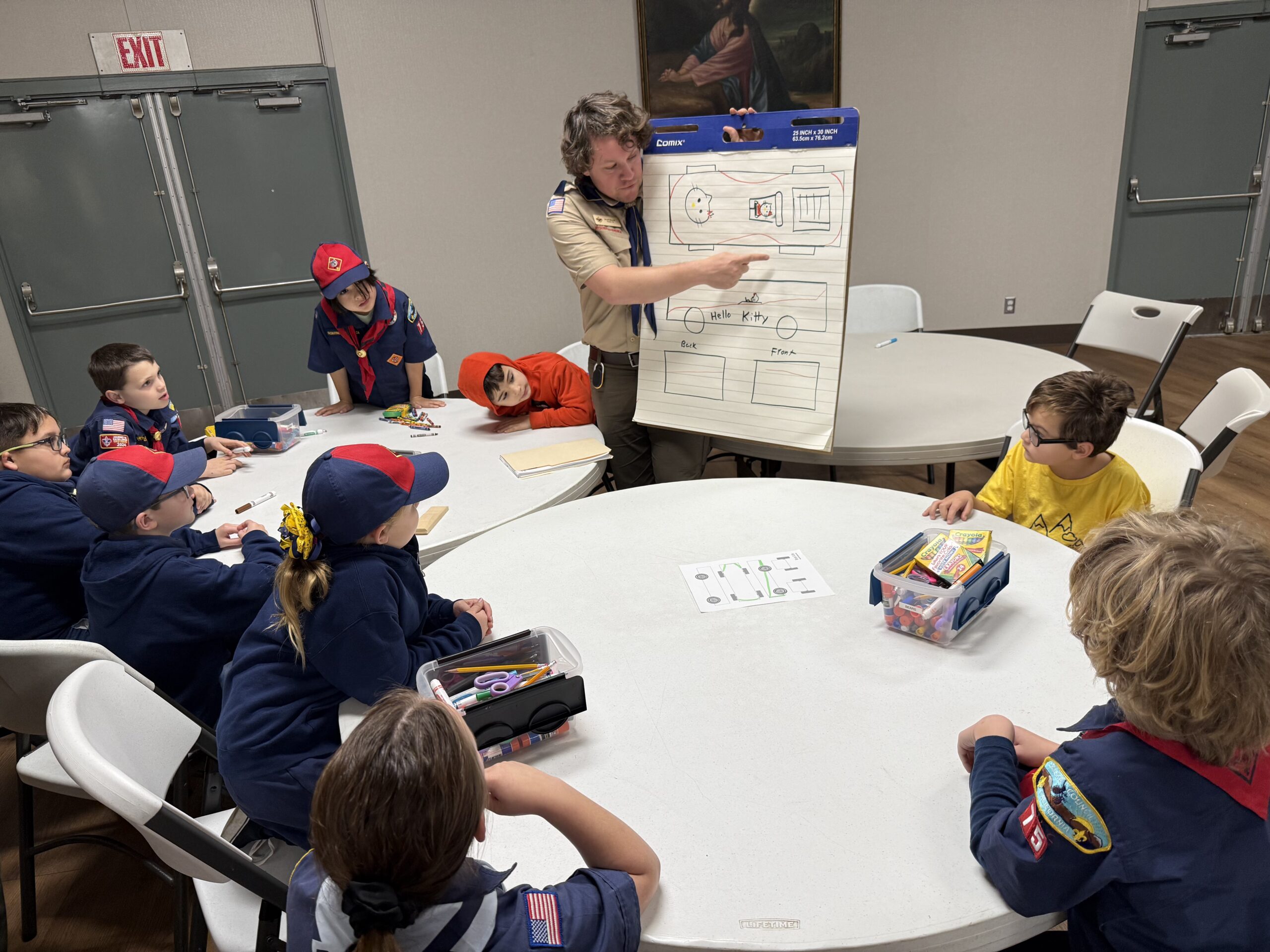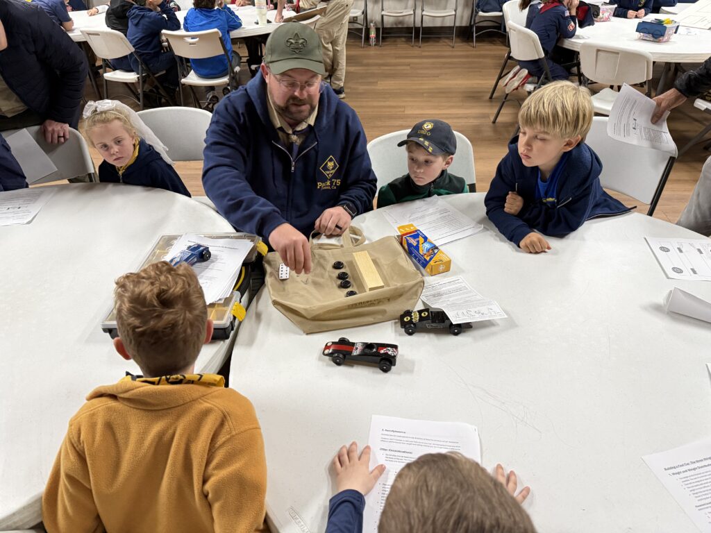 During Pack 75’s first meeting back from vacation, the Scouts took time to plan for the upcoming Pinewood Derby- a classic and highly-anticipated Scouting tradition. They learned some of the science and techniques behind building an effective race car, brainstormed and planned their designs, and discussed good sportsmanship.