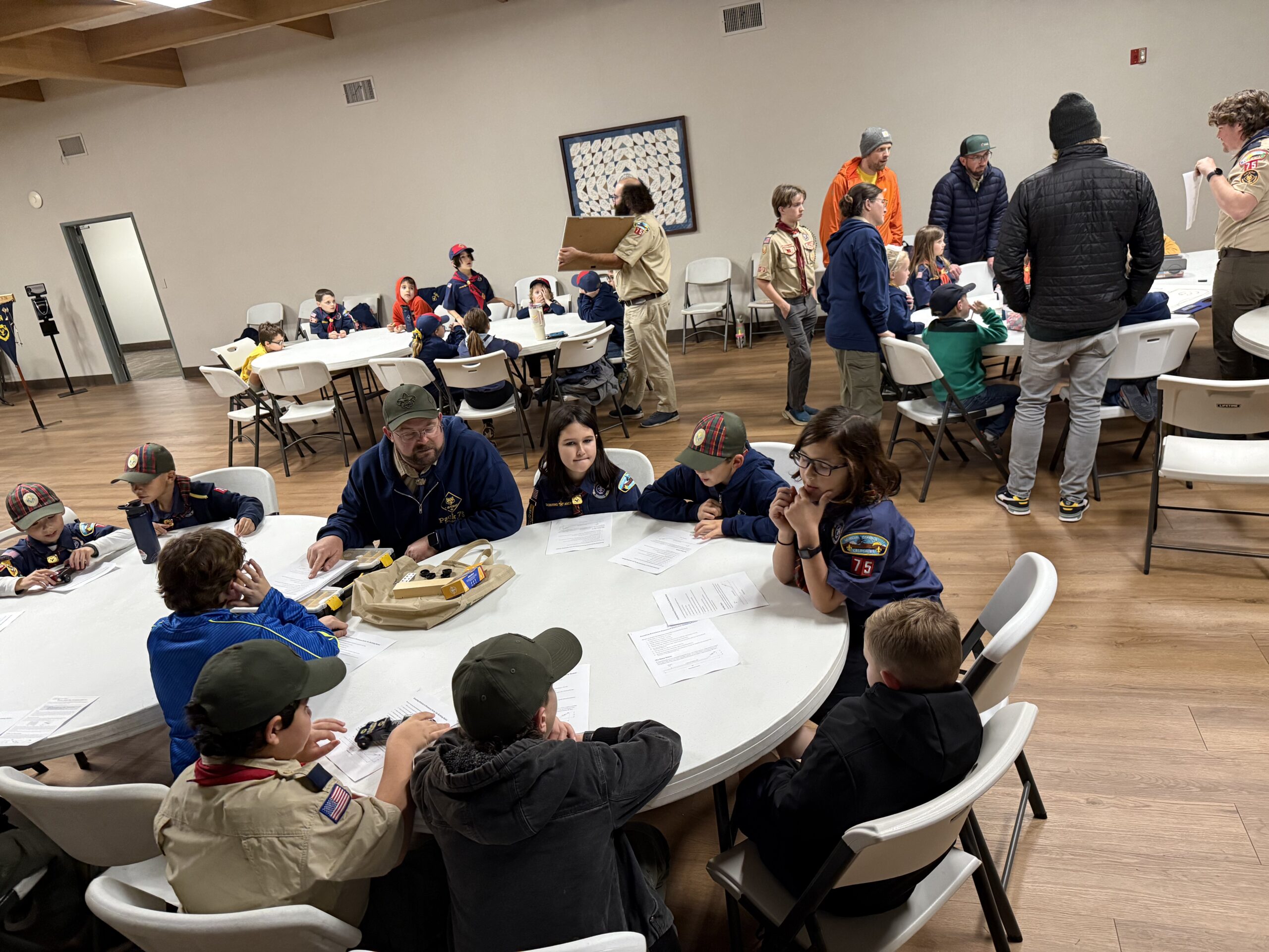 During Pack 75’s first meeting back from vacation, the Scouts took time to plan for the upcoming Pinewood Derby- a classic and highly-anticipated Scouting tradition. They learned some of the science and techniques behind building an effective race car, brainstormed and planned their designs, and discussed good sportsmanship.