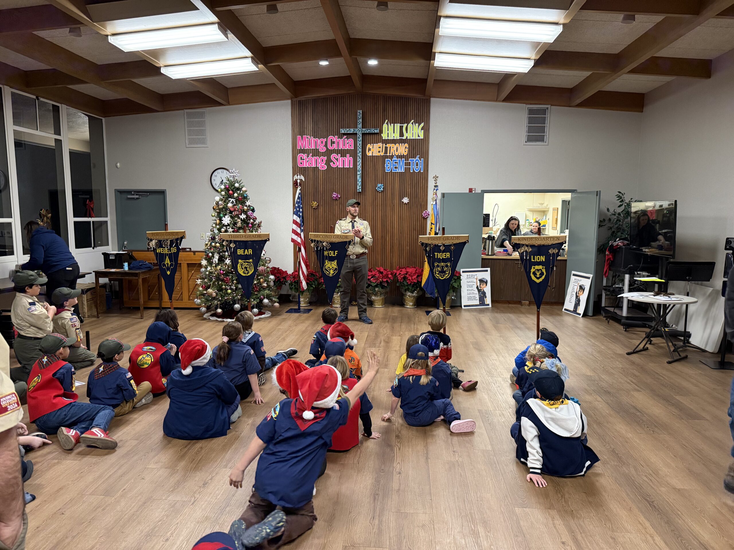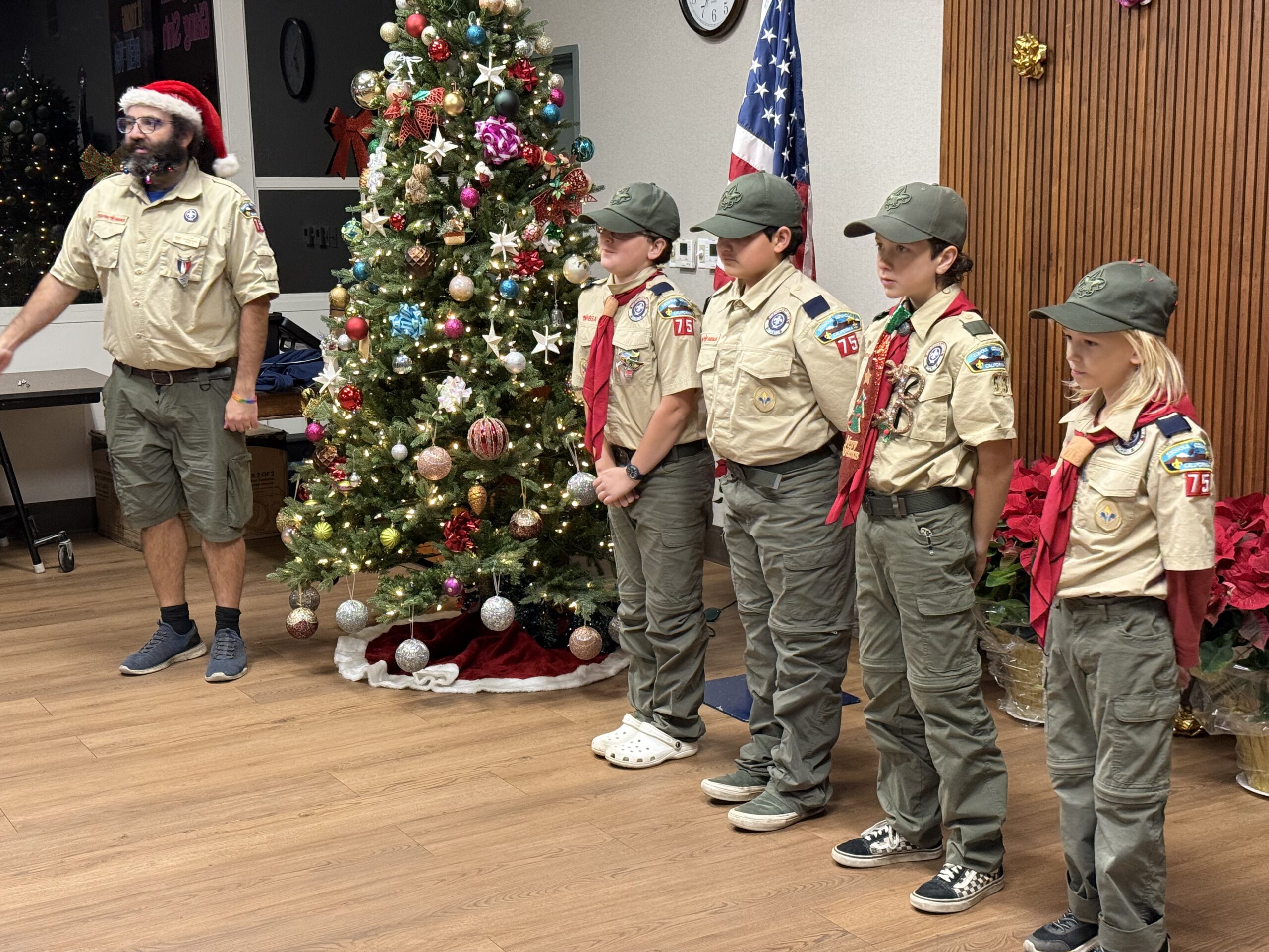 The Wolf Den put on a spectacular holiday party for the pack filled with music, crafts, and a whole bunch of snacks and treats. This was also Pack 75’s last award ceremony for the year, and lots of scouts earned achievements. Plus- Bari Santa made a special surprise appearance!