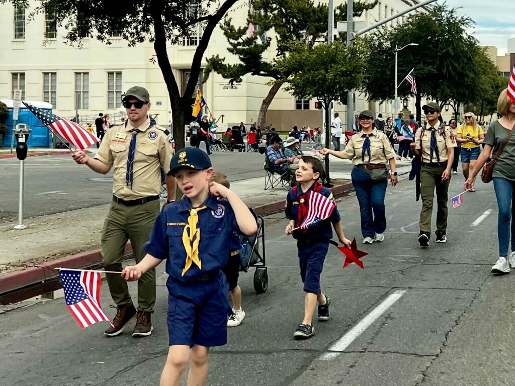 Once again Pack 75 participated in the annual Veterans Day Parade in Downtown Fresno, honoring some of our nation’s heroes. This year the Scouts were joined by other great units from the Sequoia Council to really show a strong Scouting spirit in this year’s parade.